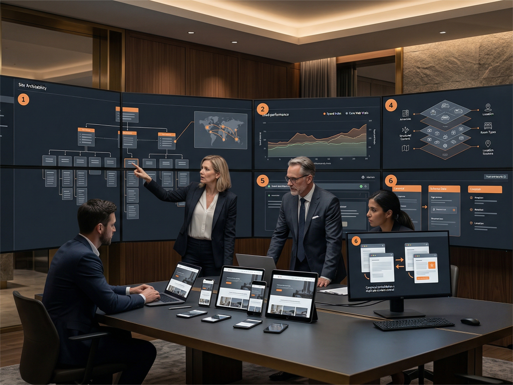 Page load time is both a direct ranking factor and a conversion killer, a hotel website that takes more than three seconds to load loses a significant portion of potential guests before they ever see a room photo. Optimizing images, minimizing code bloat, and leveraging browser caching are foundational technical SEO fixes that pay dividends in both rankings and bookings.
